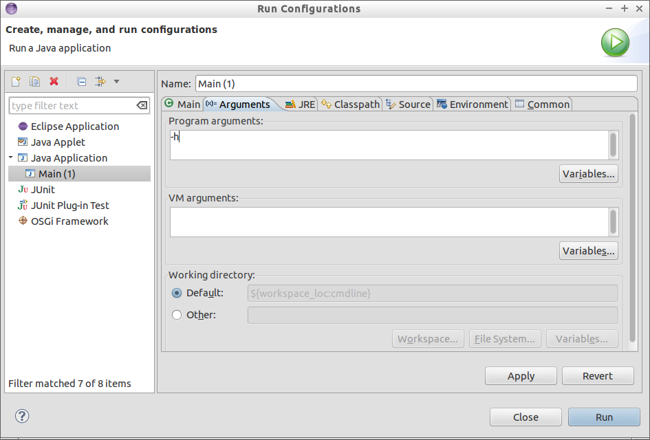 3.3.1. Using Command Line Parameters in Eclipse¶