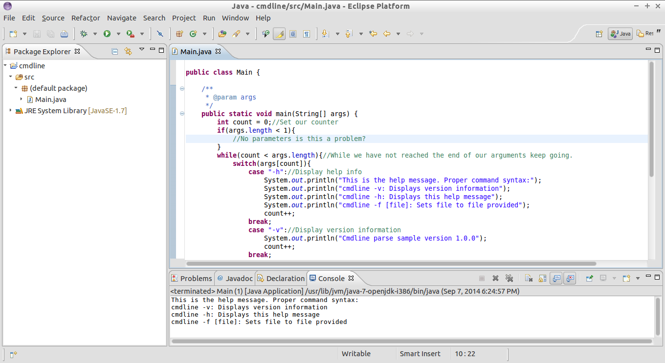 Sometimes your projects developed in Eclipse need to test invoking the program through command line parameters. You can view a tutorial of the material.