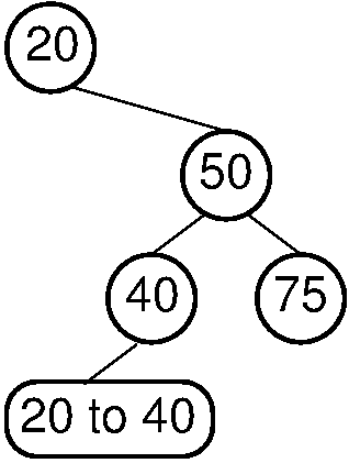 Figure 7.15.1: To be a binary search tree, the left child of the node with value 40 must have a value between 20 and 40.