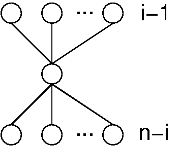 Figure 31.6.1: The poset that represents the minimum information necessary to determine the \(i\) th element in a list. We need to know which element has \(i-1\) values less and \(n-i\) values more, but we do not need to know the relationships among the elements with values less or greater than the \(i\) th element.