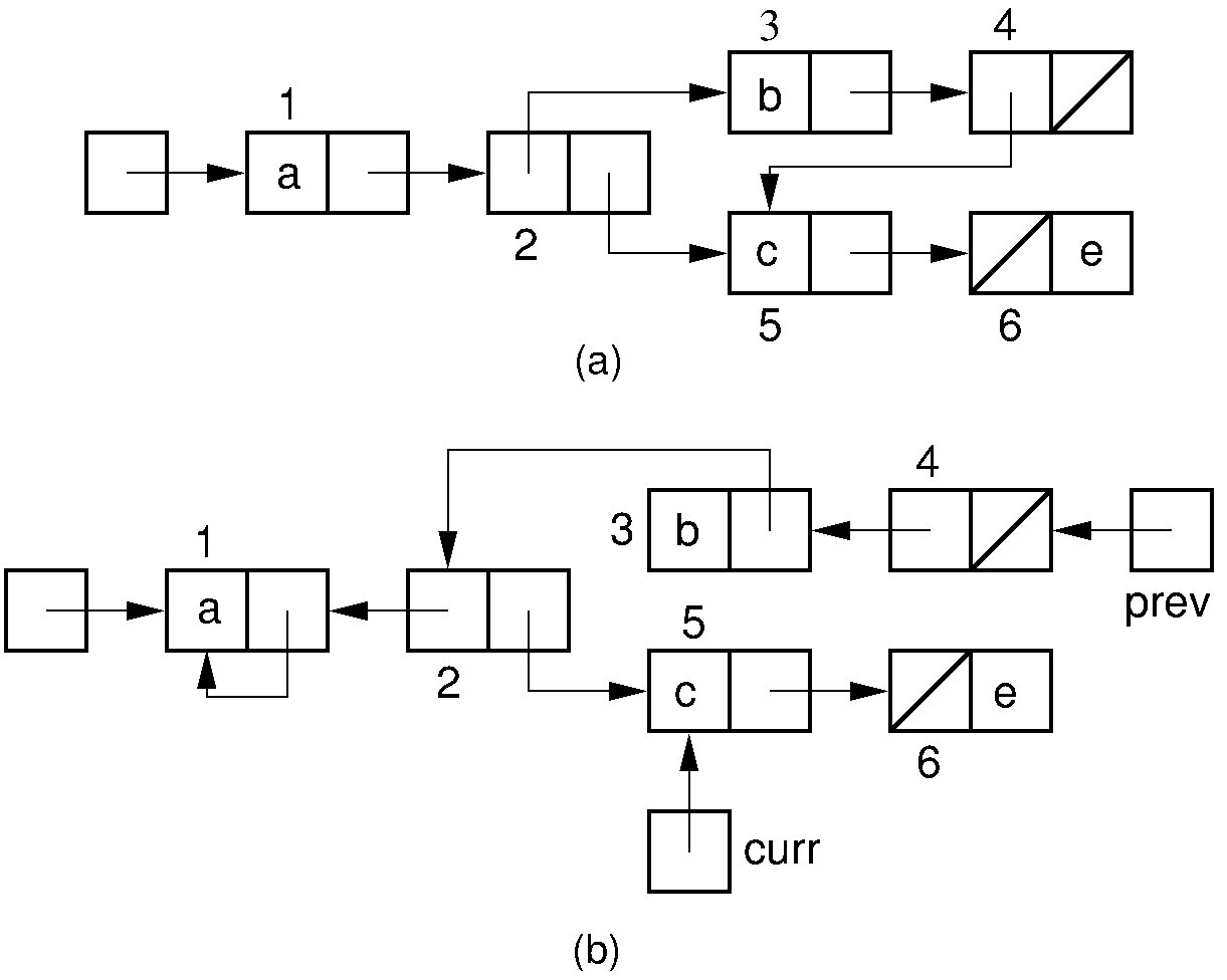 (b) The multilist structure of (a) at the instant when link node 5 is